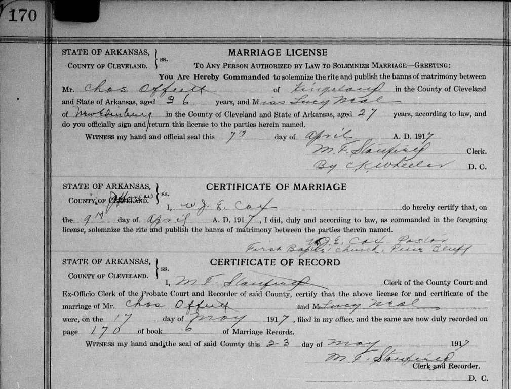 Marriage of Chas. Offutt to Lucy Neal