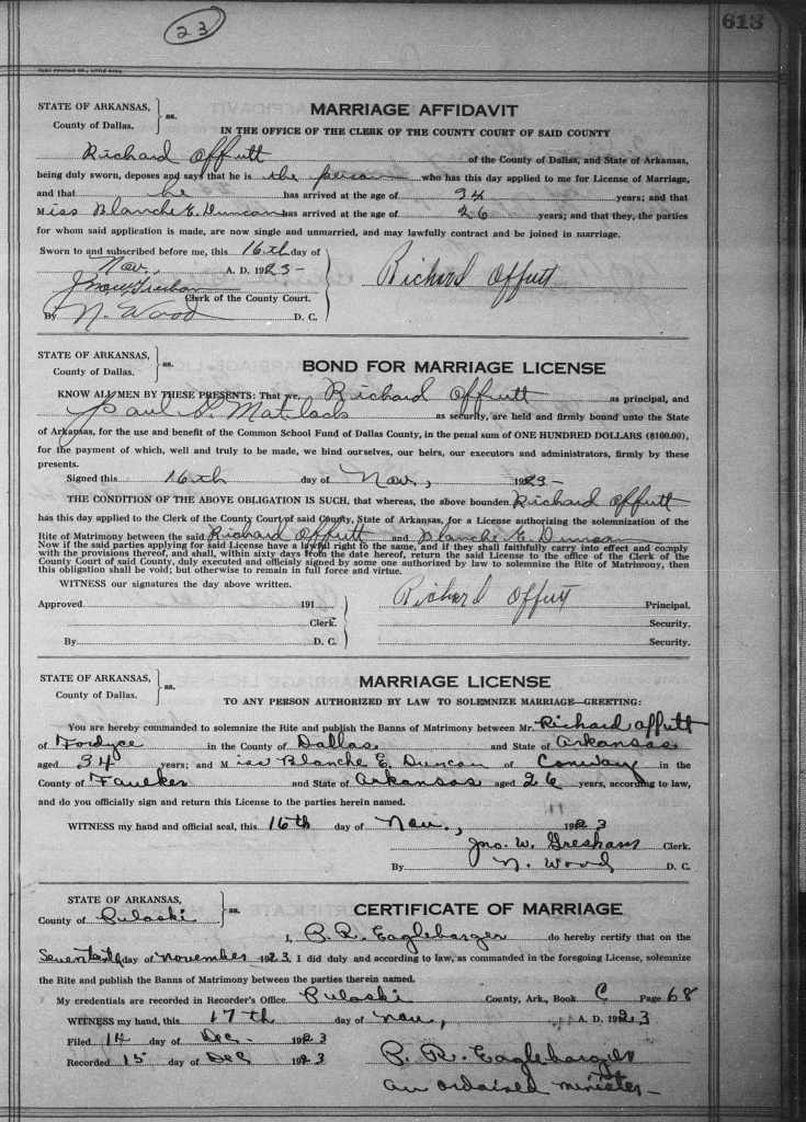 Marriage of Richard Offutt to Blanche E. Duncan