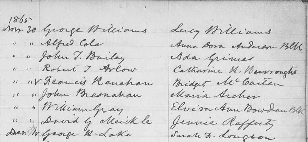 Marriage Register page showing Francis Renehan and Bridget McCarten