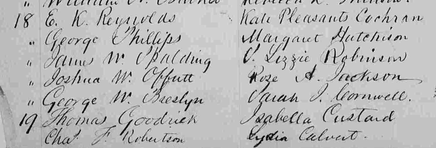 Marriage Register page showing Joshua W. Offutt and Rose A. Jackson