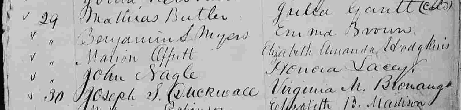 Disctrict of Columbia Marriage Register; Marion Offutt to Elizabeth Amanda Hodgkins