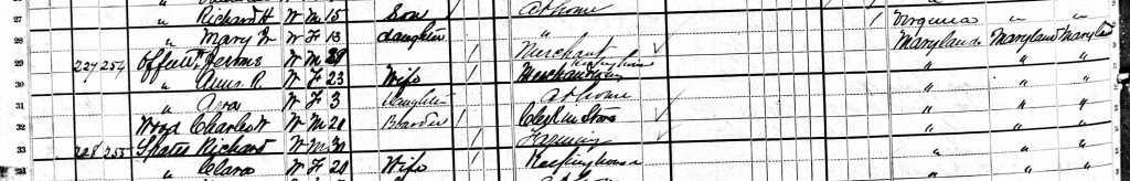 1880 Federal Census; 3rd Election Dist., Montgomery County, MD. Household of W. Jerome Offutt