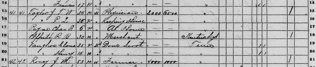 Household of J. T. W. Taylor. Includes R. B. Offutt