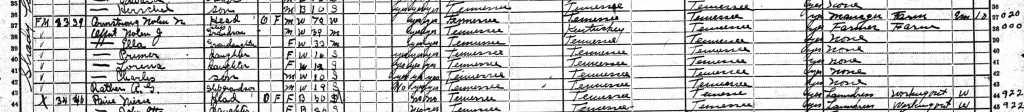 1920 Federal Census; Civil District 15, Robertson County, TN. Nolin N. Armstrong