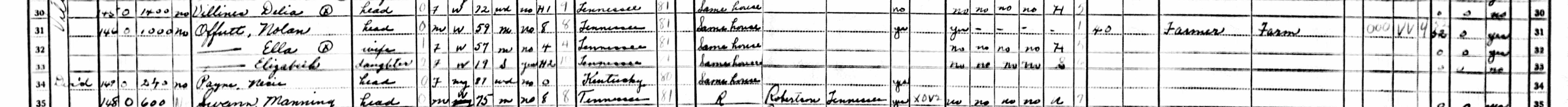 1940 Federal Census; Civil District 15, Robertson County, TN. Nolan Offutt
