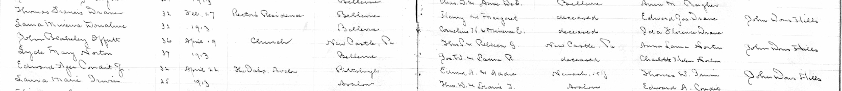 Church Register, Marriages Page 116 showing marriage of John Beakeley Offutt to Lyde Mary Norton