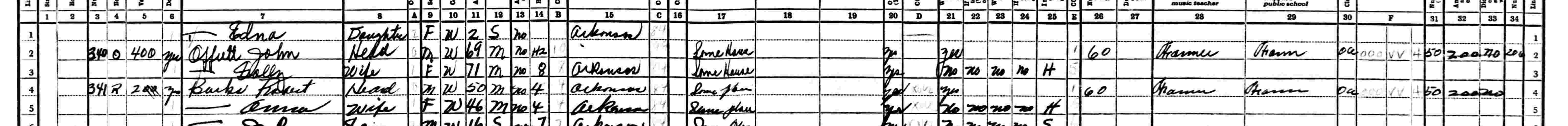 1940 Federal Census; Redland, Cleveland County, AR. Household of Hugh Offutt continued from previous sheet
