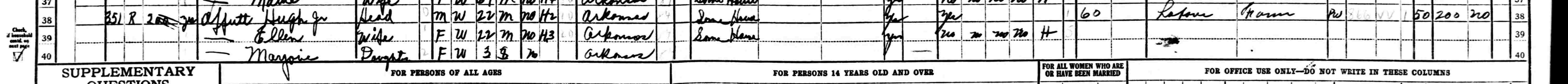 1940 Federal Census; Redland, Cleveland County, AR. Household of Hugh Offutt Jr