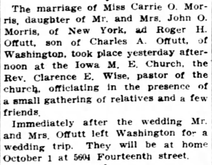 Wedding Announcement for Roger H. Offutt and Carrie O. Morris