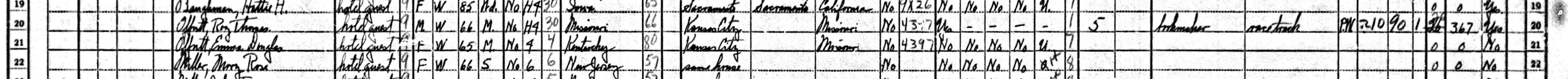 1940 Federal Census; San Diego, CA. Sanford Hotel that has Roy Thomas Offutt, and wife