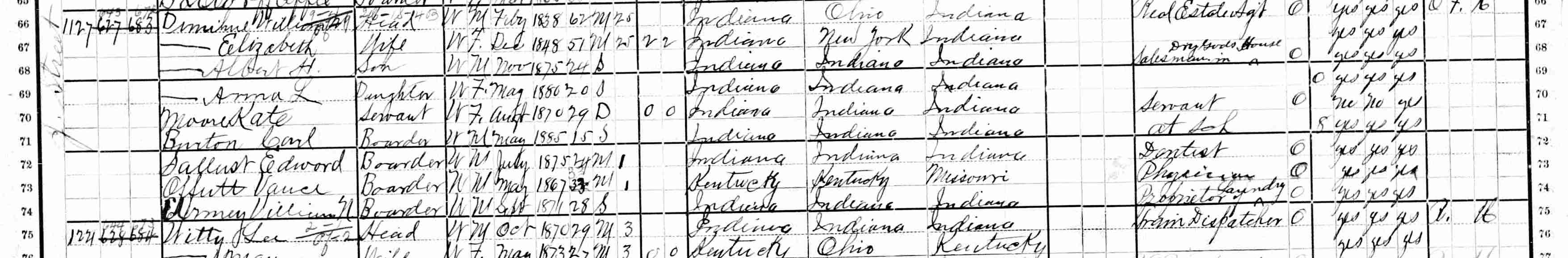 1900 Federal Census of Bedford , IN. Listing shows a Vance Offutt