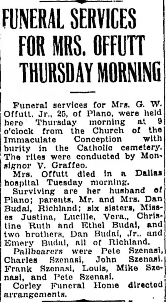 Funeral Notice for Mrs. G. W. Offutt