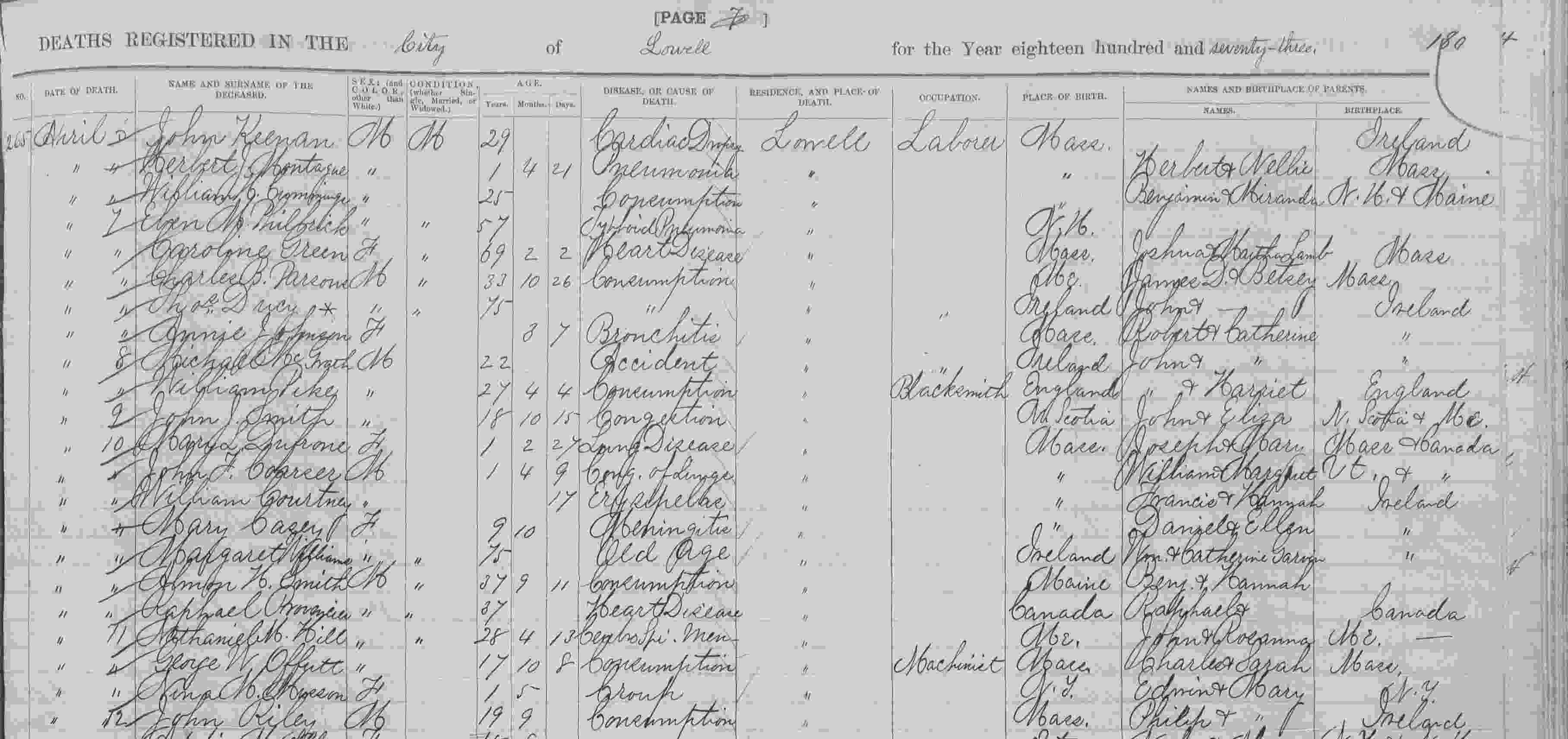 Lowell Massachusetts Death Register for 1873, lists George W. Offutt