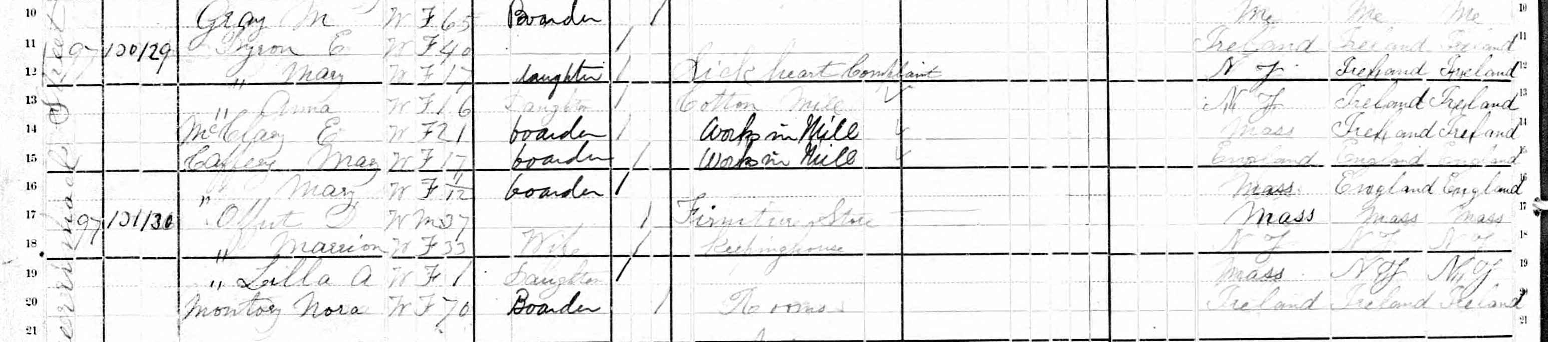 1880 Census of Lowell, MA. Household of D. Offut (As listed)