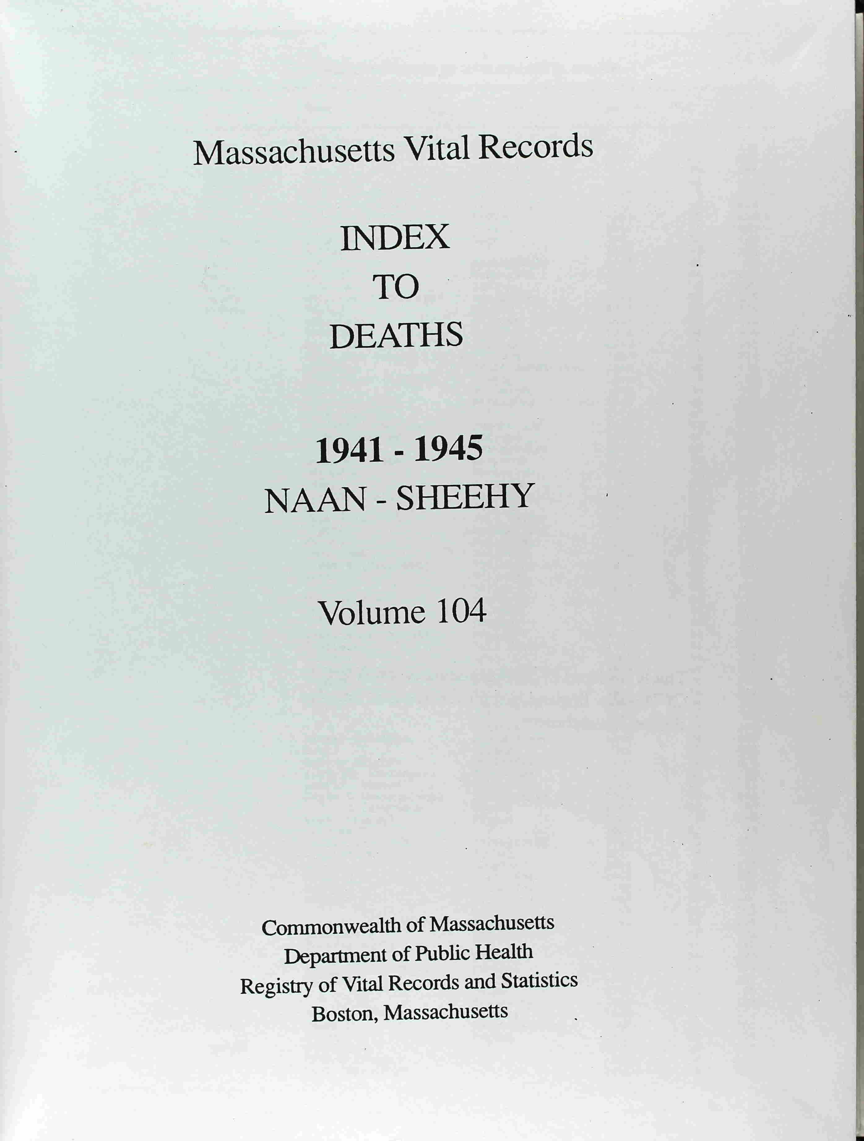 Index to Deaths in Massachusetts; Vol. 104, Title Page