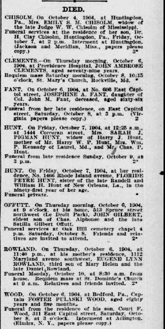 Printed in the Friday, October 7, 1904 edition of The Evening Star on page 5