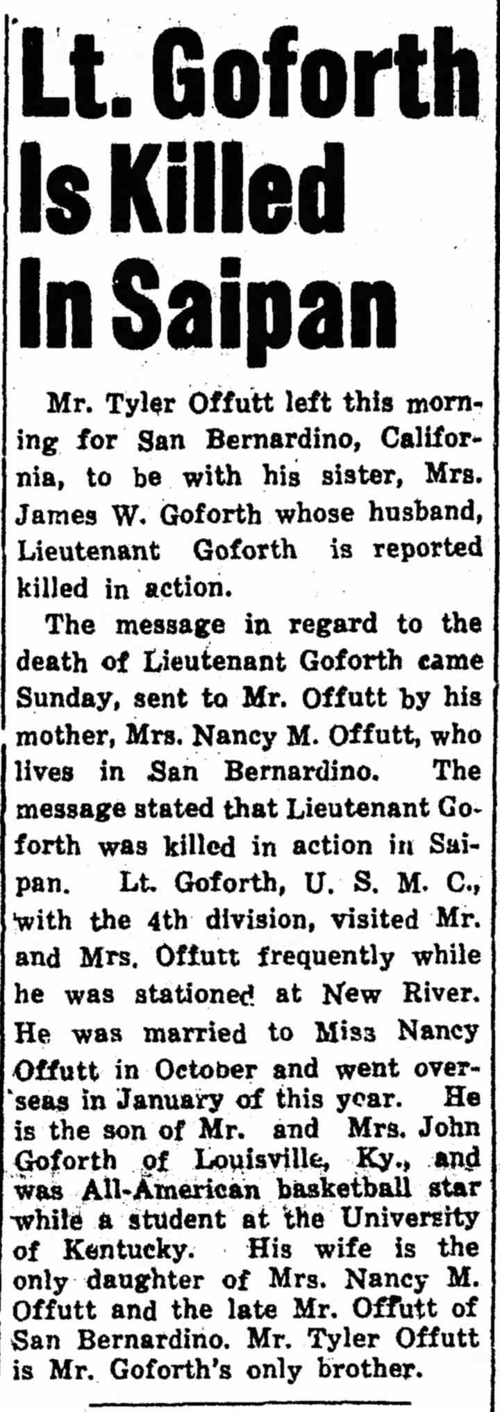 Death of Lt. James W. Goforth