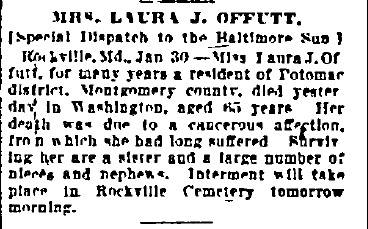 Notice of death for Miss Laura J. Offutt