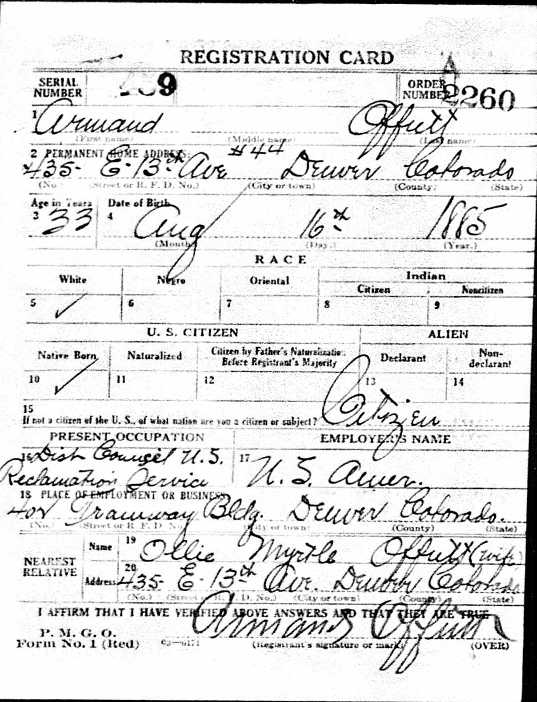 World War I Draft Registration; Armand Offutt