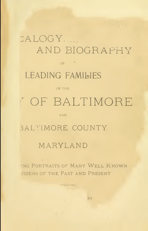 Title Page from Genealogy and Biography of Leading Families of the City of Baltimore
