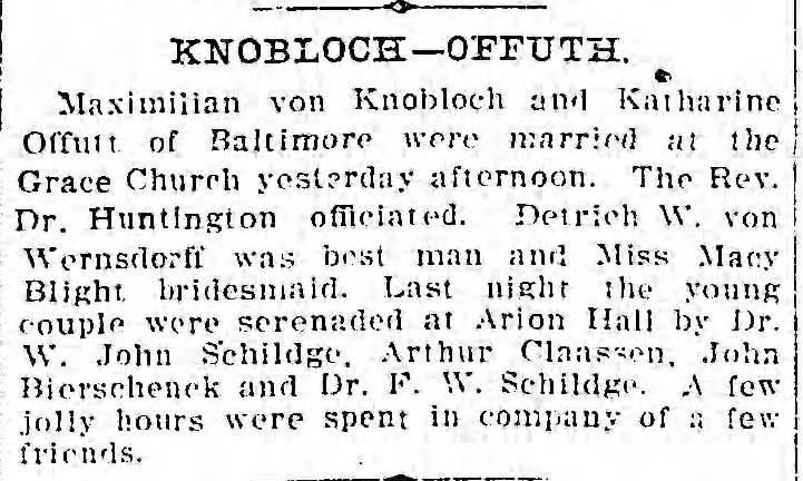 Wedding of Katharine Offutt to Maximillian von Knobloch