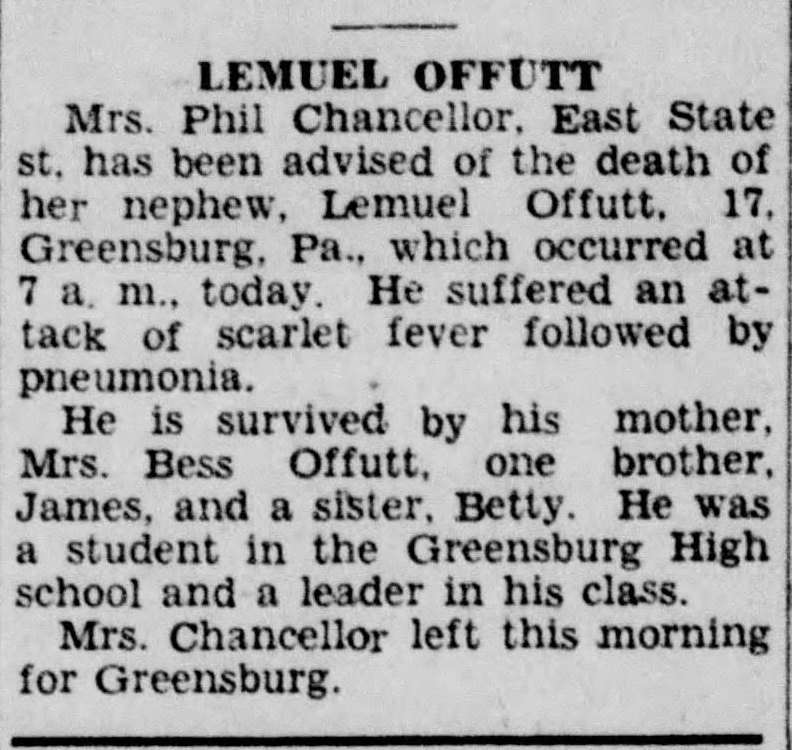 Death of Lemuel Offutt