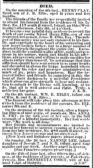 Death Notice for Annie Lee Offutt, infant daughter of Joseph T. and S. M. Offutt