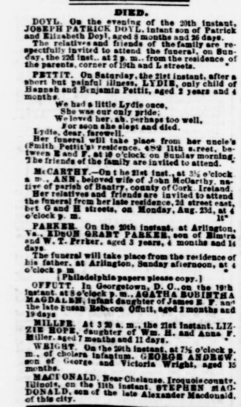 Printed in the August 21, 1869 issue of the Evening Star, on page 3