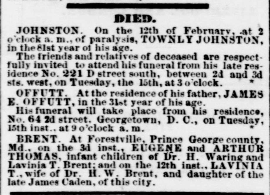 Printed in the February 14, 1870 issue of the Evening Star, on page 3