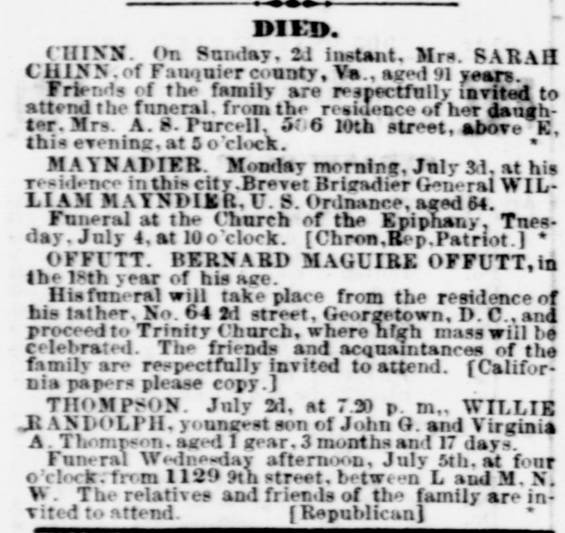 Printed in the July 3, 1871 issue of the Evening Star, on page 3
