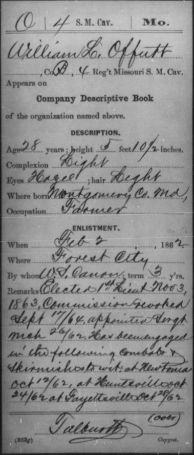 Compiled Service Records, Company Descriptive Book Card for William L. Offutt