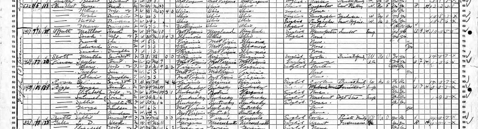 1910 Census of Huntington, Cabell County, WV; Matthew Offutt