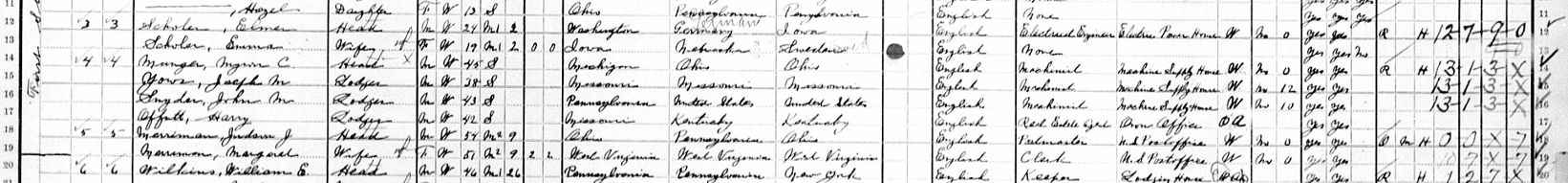 1910 Census of Lind, Adams County, WA. Household of Myron Munger, lists Harry Offutt as a lodger