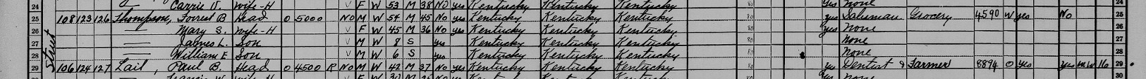 1930 Federal Census; Cynthiana, Harrison County, KY. Household of Forrest B. Thompson
