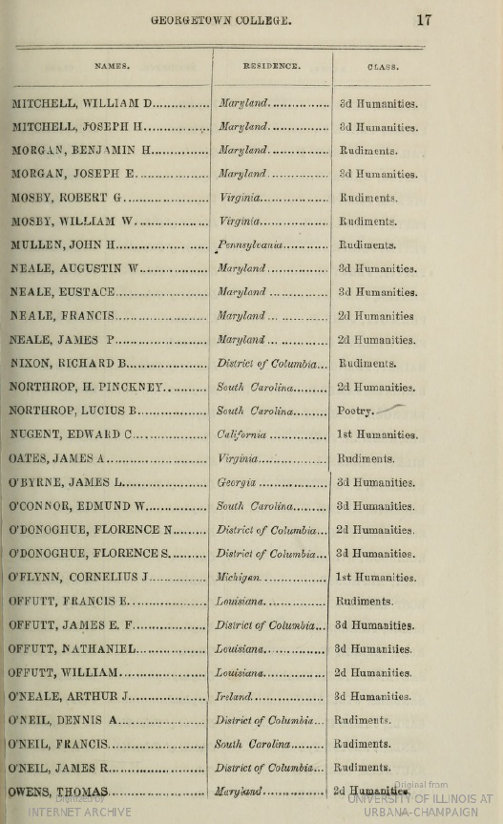 Catalogue of Officers and Students of Georgetown College, District of Columbia for the academic year 1854-1855, page 17.