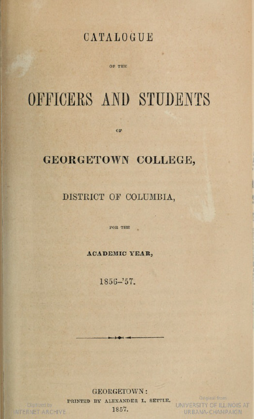 Catalogue of Officers and Students of Georgetown College, District of Columbia for the academic year 1856-1857, Title Page.