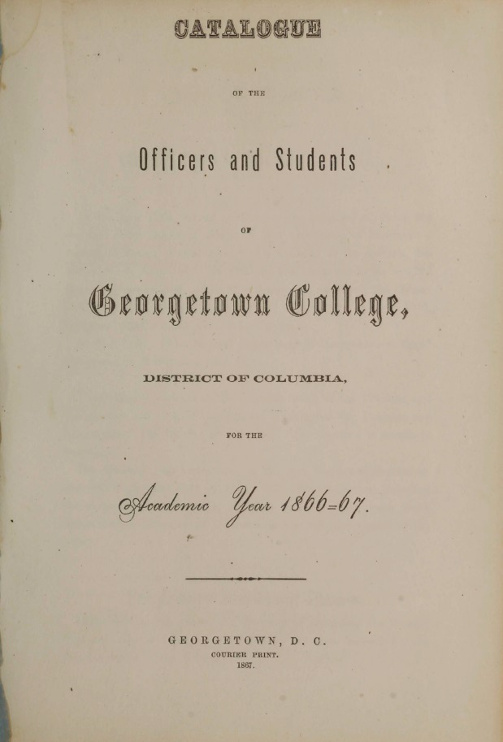 Catalogue of Officers and Students of Georgetown College, District of Columbia for the academic year 1866 - 1867, Title Page.