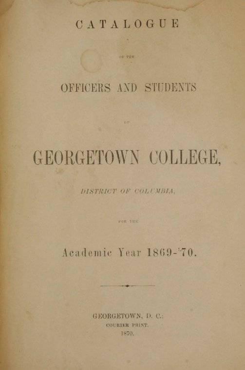 Catalogue of Officers and Students of Georgetown College, District of Columbia for the academic year 1869 - 1870, Title Page.