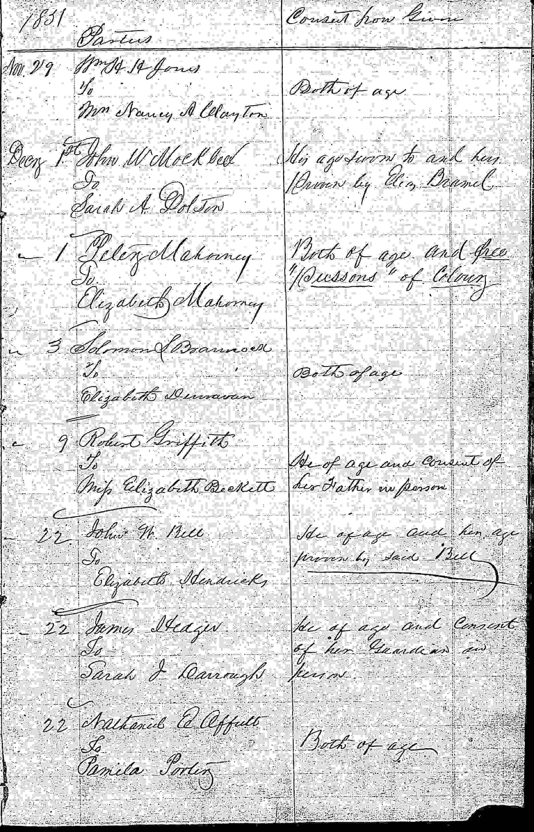 Harrison County Kentuck Marriage Register entry for Nathaniel E. Offutt and Pamila Porter