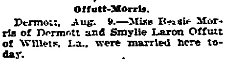 Wedding of Smylie Laron Offutt and Miss Bessie Morris