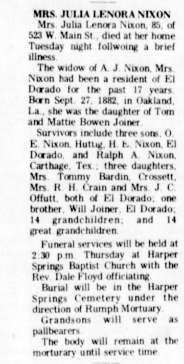 Obituary for Mrs. Julia Lenora Nixon
