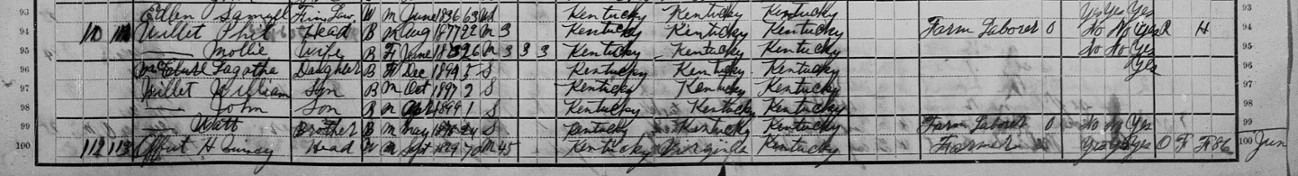 1900 Federal Census of Magisterial District 1, Union County, KY. Household of H. Quincy Offutt