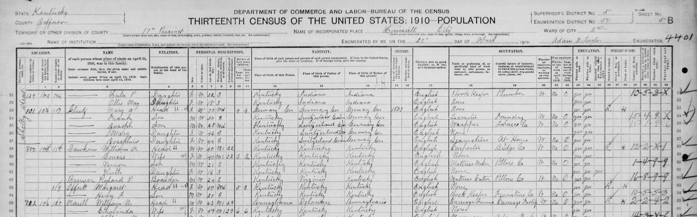 1910 Federal Census; Louisville, Jefferson Cty., KY. Household of Margaret Offutt