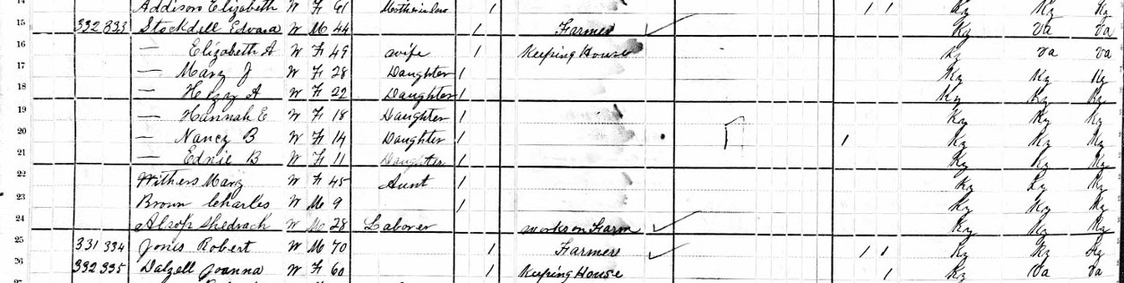 1880 Federal Census of Lytles Fork District, Scott County, KY. Household of Edvard Stockdell
