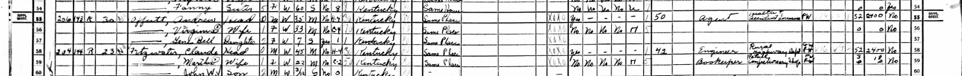 1940 Federal Census; Somerset, Pulaski County, KY. Household of Andrew Offutt