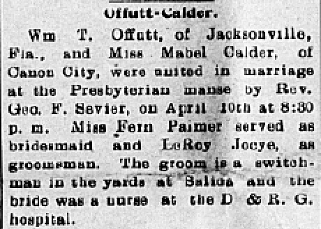 Marriage Announcement for Wm. T. Offutt to Mabel Calder