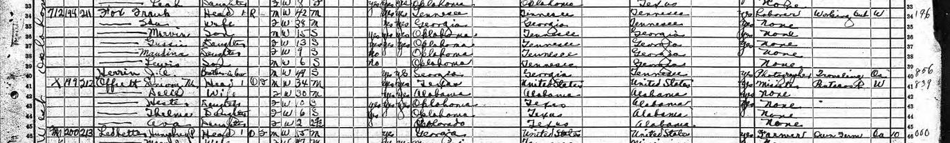 1920 Federal Census; Sulpher City, Murray Cty., OK. Household of Emery (Or could be Emory) Offutt [Indexed as Elviory Offutt on FamilySearch]