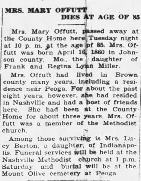 Death of Mrs. Mary Offutt