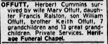 Funeral Notice for Herbert C. Offutt