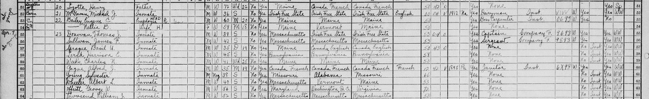 1930 Federal Census; Chelsea Town, Kennebec County, Maine. Lists George W. Offutt in the National Soldiers Home Eastern Branch